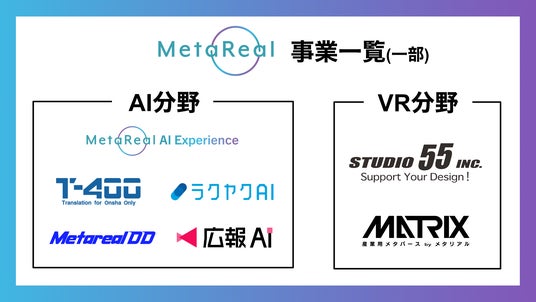 当グループは、AI技術を持つロゼッタとVR技術を持つSTUDIO55を傘下に持ち、両領域からデジタル空間経済の発展を支える体制を整えています。