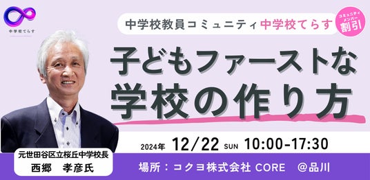 株式会社NIJIN(本社:東京都江東区、代表取締役:星野達郎)が運営する「中学校てらす」は、コクヨ株式会社東京品川オフィス内「CORE」にて「子どもファーストな学校の作り方」を開催いたします。