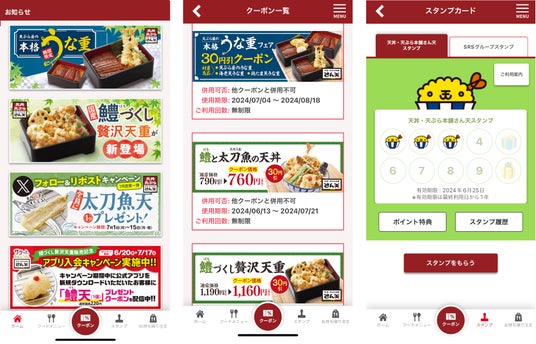 天丼・天ぷら本舗さん天公式アプリ 画面イメージ