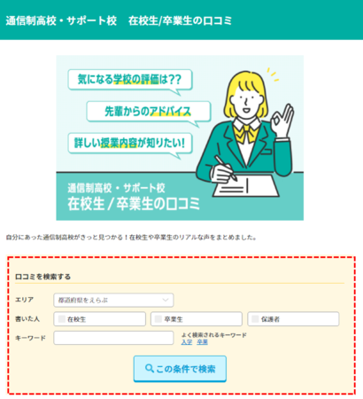 ▼『通信制高校・サポート校 在校生/卒業生の口コミ』コンテンツページ