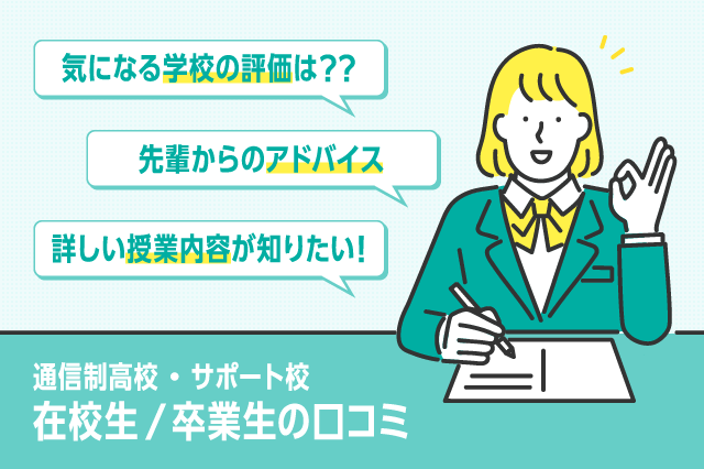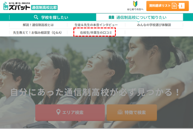 そこで「ズバット 通信制高校比較」では、これから通信制高校やサポート校を選ぶ方にとってより手助けとなるような追加コンテンツのひとつとして、『通信制高校・サポート校 在校生/卒業生の口コミ』を新たに公開いたしました。