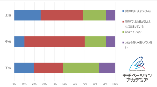 成績「上位」「中位」のお子様に比べ、成績「下位」のお子様は具体的な将来の目標が決まっていない割合が高い傾向にありました。