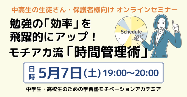 ~勉強の「効率」を飛躍的にアップ!モチアカ流「時間管理術」 オンラインセミナー開催~