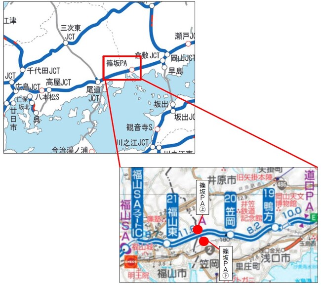 【場所】 E2 山陽自動車道 篠坂PA(上り線:岡山方面) 岡山県笠岡市篠坂1784-1