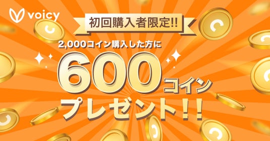 新機能「コイン」の導入にともない、初回購入者限定のキャンペーンを実施します。初めてVoicyでコインを購入する方限定で、2,000コインを購入すると600コインをプレゼントします。本キャンペーンにおいてプレゼントされたコインの有効期限はありません。