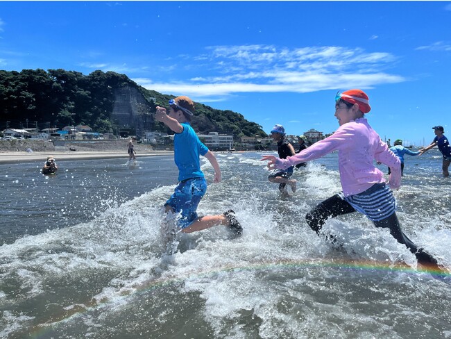 国内最大級の子どもとお出かけ情報サイト「いこーよ(https://iko-yo.net)」を運営するアクトインディ株式会社(以下:アクトインディ)は、子どもたちがライフセーバーと海に入り、カラダ全身を使って海と触れあう体験プログラム「海のおもいで創造プログラム」(以下:本プログラム)を、2022年7月7日~8月26日の期間、鎌倉材木座海岸および逗子海岸にて、小学校や民間学童に通う約500名の子どもたちに向けて実施しました。