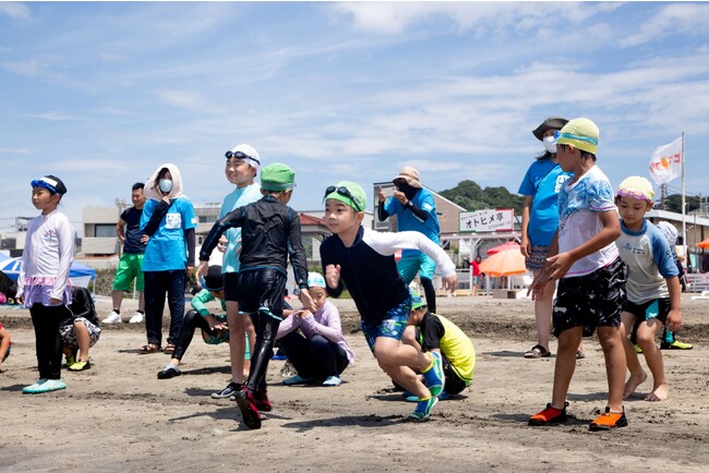 本プログラムは、ライフセーバーが指導の下、子どもたちが安全に楽しく海と触れあい、海に親しむ体験を通じて、近年深刻化している子どもの海離れ(2022年「海と日本人に関する意識調査」)を解消していくためのプログラムです。今夏は、小学校から約100名、民間学童に通う約400名の子どもたちが本プログラムに参加し、海で走る、浮く、波に乗るなどのアクティビティを体験しました。子どもたちの中には、人生で初めての海体験に、緊張してしまう子もいましたが、ライフセーバーが傍にいることで安心して海に親しむことができ、アクティビティの終盤では、笑顔で自ら海へ向かっていく姿が見られました。また前年からリピート参加している子どもたちは、海への抵抗感が解消され、率先して海に入っていく姿を見ることができ、昨年からの心身の成長やその変化を確かめることができました。