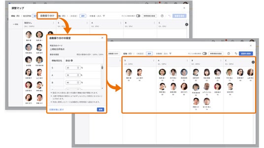 株式会社カオナビ(本社:東京都渋谷区、代表取締役社長CEO:佐藤 寛之)が提供するタレントマネジメントシステム「カオナビ」は、評価ワークフロー「スマートレビュー」において、社員の評価スコアを元に、企業ごとの配分比率に沿って評価ランクを自動で割り当てる「自動相対評価」機能を、2026年3月31日(火)より提供開始します。
