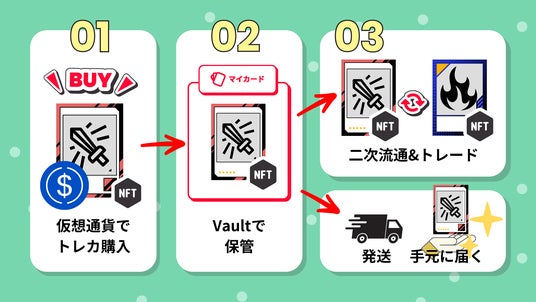 鑑定済みのトレーディングカードをNFT(非代替性トークン)としてデジタル化し、ブロックチェーン上での所有・取引を可能にするプラットフォームです。NFTはOasys Verse Layer「TCG Verse」で発行されています。