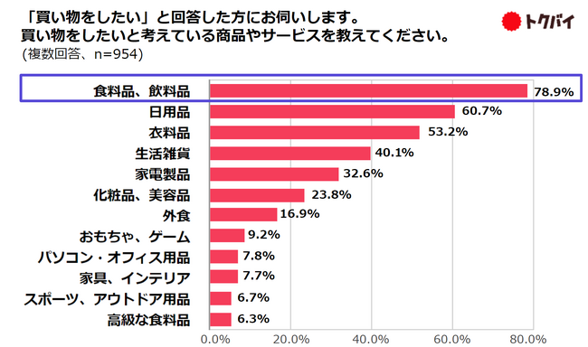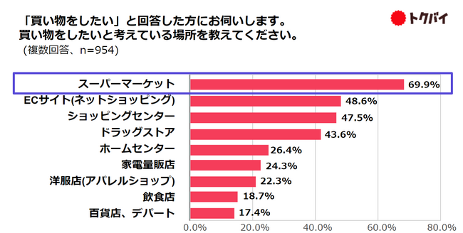 買い物をしたい場所1位は「スーパーマーケット」、約8割が「食料品・飲料品」を購入したい