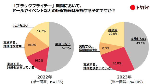 「ブラックフライデー」のセールやイベントの施策が決定している企業が昨年より約1割増加、「黒」や「96(クロ)」など “ブラック” に関連する商品のセールなどを予定