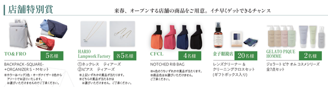 その他、来春オープンの店舗特別賞、B1店舗賞など全16の賞品をご用意。