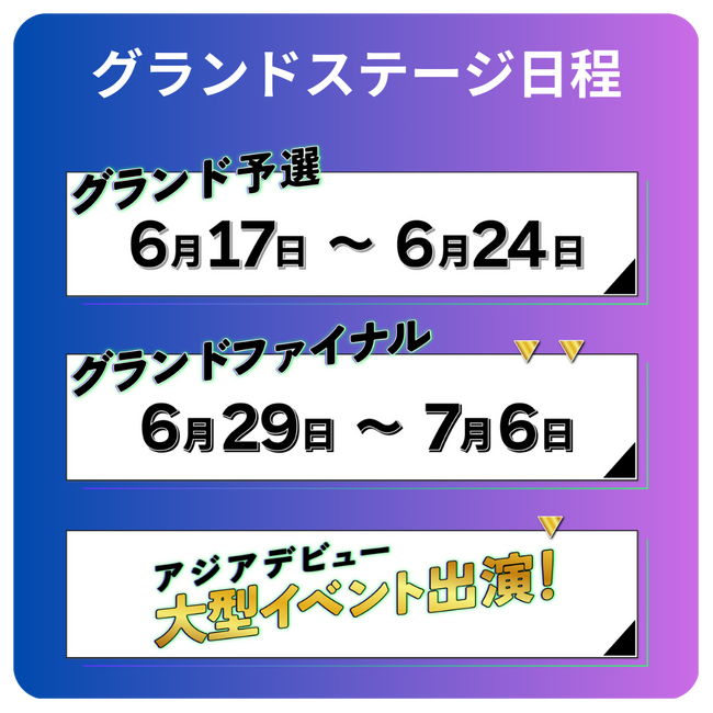 イベント出演の渡航費や活動サポート費用として、グランドステージ上位3名へ総額150万円の賞金を贈呈します。