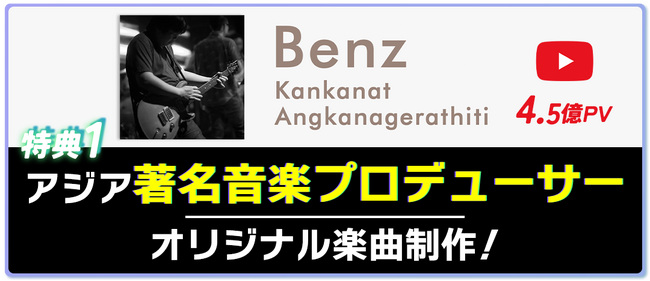 作曲した楽曲のYouTube視聴数は4.5億回超。アジアで活躍する著名な音楽プロデューサーBenzがオリジナル曲を提供します。