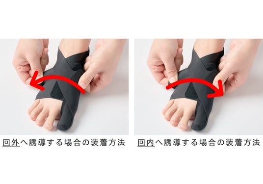 従来、足の親指サポーターは指の間にパッドを挟むタイプや、厚い生地のものが多く、靴が限定されてしまうという課題がありました。親指をサポートしながら好きな靴を履ける製品が欲しいというお客さまの声から、独自の薄手素材を使用した親指サポーターを開発し、長年にわたり販売してきました。その中で、多くの使用者から意見を集めたところ親指の状態は個々で異なり、使用者の状態に合わせてサポート力や方向を調整できるものも必要であると分かりました。このニーズに応えるために開発された製品が「TBCクロス」です。