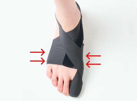 3. 横アーチサポート甲周囲を絞り、横アーチをつくることで足指が使える歩行へ誘導します。また、横アーチをつくることは、親指を開くための重要な働きの1つです。