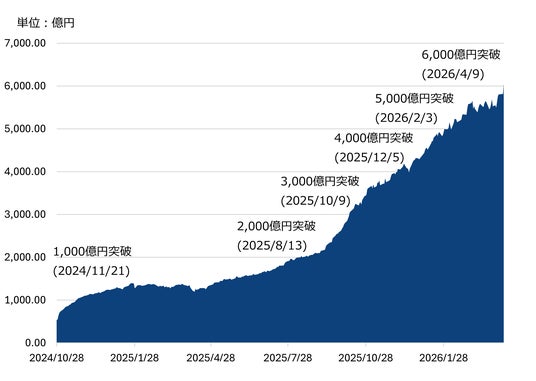 設定来の当ファンドの純資産総額の推移(2024年10月28日から2026年4月9日まで)