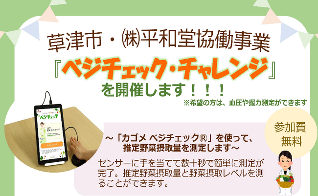 「平和堂・草津市 協働企画 『健幸』と『HOPポイント』を!『ベジチェック・チャレンジ』