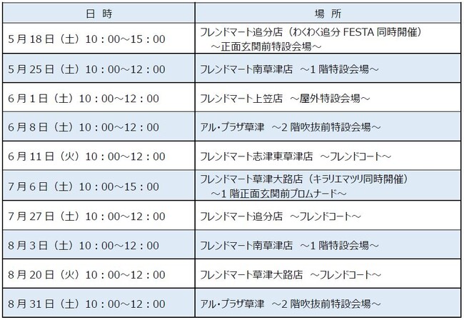 ~2024年5月から8月、草津市内6店舗にて計10日間実施予定~