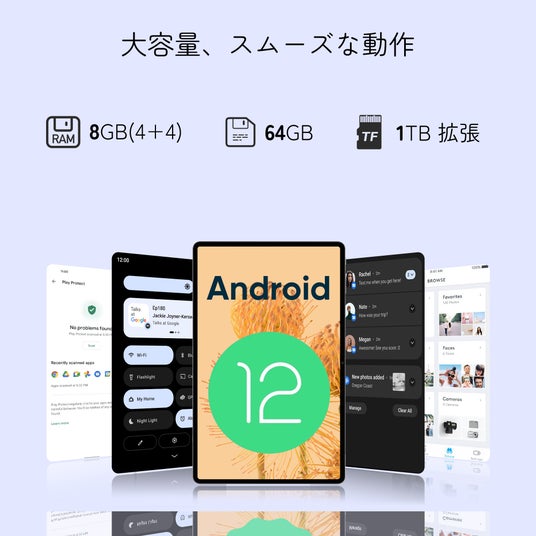 【Android 12+GMS認証】Android 12搭載、GMS認証済み。Google Play ストアから豊富なアプリ利用可能。多彩な用途に対応。
