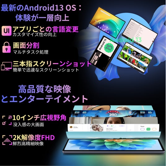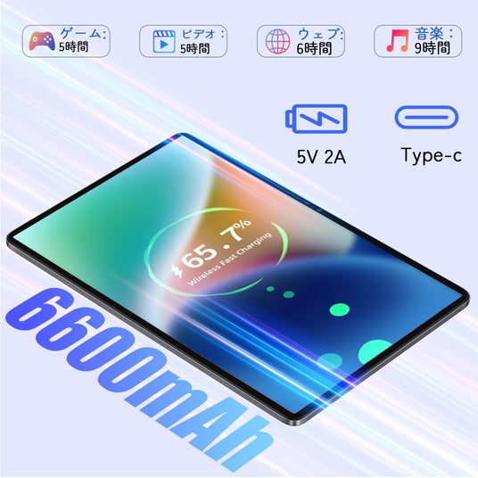 【10.1インチIPSディスプレイ+6600mAhバッテリー】高解像度IPSディスプレイ、16:10画面比率。6600mAhバッテリーで映画、電子書籍、音楽を長時間楽しめる。