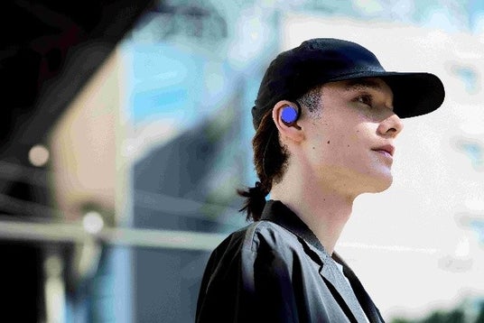 周囲の音を感じながら自分だけの音に没入できる高音質オープンイヤー設計。A PROP限定のイコライザー・起動音・アプリUIとブラック×パープル/ホワイト×パープルの限定カラーを組み合わせ。
