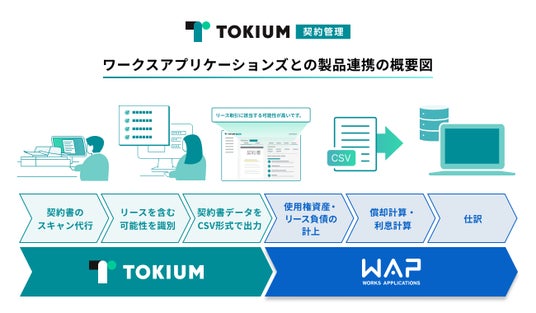 株式会社TOKIUM(本社:東京都中央区、代表取締役:黒崎 賢一、以下「TOKIUM」)と株式会社ワークスアプリケーションズ(本社:東京都千代田区、代表取締役最高経営責任者:秦 修、以下「WAP」)は、2024年9月13日に企業会計基準委員会(ASBJ)が公表した「リースに関する会計基準」(以下「新リース会計基準」)に対応する企業の支援を目的に製品連携を開始します。本連携により、契約書のスキャンからその後の会計処理までをワンストップでサポートできるようになります。