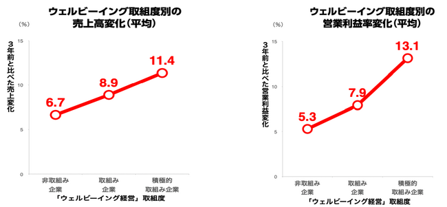 2.ウェルビーイングに積極的な企業は3年前と比較し営業利益や売上高が上昇