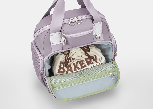 テイクアウトデリを買って公園ランチ、混雑を避けた1駅ウォーキングなど、ニューノーマル時代のおでかけを快適にする工夫が詰まった「カナナピクニックリュック3」。大きなフロントポケットが特徴で、ポケット内の底板を倒すとお弁当箱のような幅のある荷物を安定して収納できます。