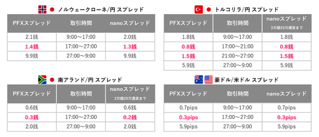 主要通貨ペアだけでなく、昨年10月より新しく取り扱いを開始した「人民元/円」や「ノルウェークローネ/円」などもキャンペーンの対象です。ぜひ業界最狭水準スプレッドでのお取引を引き続きご体感ください。