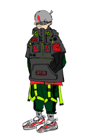 主人公キャラクターのデザインは、millennium parade「Fly with me」MVなどを手掛けるクリエイティブレーベル・PERIMETRON所属のデジタルアーティスト・神戸雄平が担当。ユニフォームは「ザ・ストロング」のパッケージデザインに基づいたカラーリングとなっており、現代を駆け巡る忍者をイメージしている。