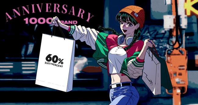 今回、1000ブランド突破を記念しアジアのZ世代に人気を集める韓国の人気イラストレーター「tree13」とのコラボレーションを実施。書き下ろしイラストの限定Tシャツやポスターなどと合わせて、60%に入店する人気ブランドによる別注Tシャツなどのアイテムが期間限定で展開されます。