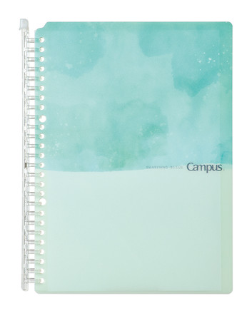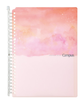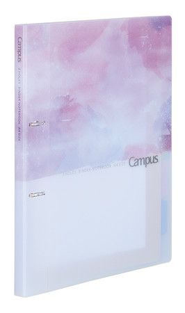 今回発売するのは、ルーズリーフとプリントを1冊にまとめてスマートに持ち運びができ、最大100枚収容できる「キャンパス プリントもとじやすい2穴ルーズリーフバインダー」と、リングノートのように折り返して使え、最大60枚収容できるスリムで軽いバインダーの「キャンパスバインダー<スマートリング60>」です。2アイテムおそろいの限定柄で、それぞれエアリーな優しいトーンの水彩グラデーションデザインを採用。「ブルー」「パープル」「ピンク」「イエロー」の4色をラインアップしました。