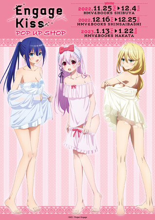 キャラクターグッズの商品企画・製作・販売を行う中外鉱業株式会社コンテンツ部は、「Engage Kiss POP UP SHOP」にて新商品を販売いたします。当イベントは2022年11月25日(金)よりHMV&BOOKS SHIBUYA・SHINSAIBASHI・HAKATAにて順次開催となります。