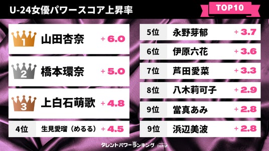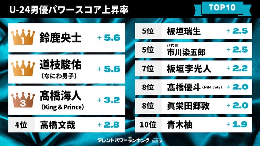 キャスティング担当者必見! いま勢いがある旬の若手男優・女優は? U-24(24歳以下)男優・女優パワースコア上昇率TOP10
