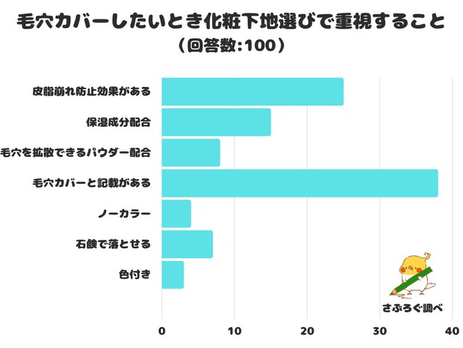 毛穴カバーしたいとき化粧下地選びで重視することをアンケートにて調査したところ、1位は「毛穴カバーと記載がある」でした。