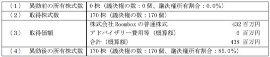当社は、2026年4月27日開催の取締役会において、以下のとおり、株式会社Roombox(以下、RBX社)の株式を取得して連結子会社化することについて決議いたしましたので、お知らせいたします。