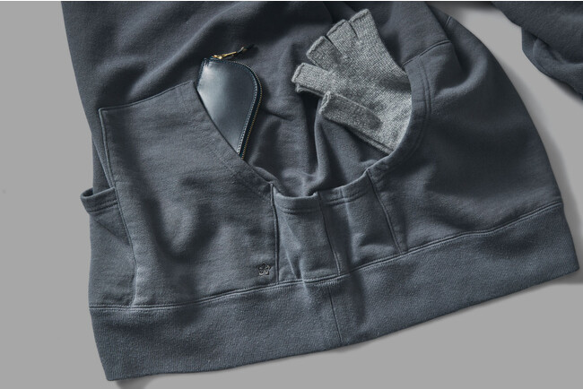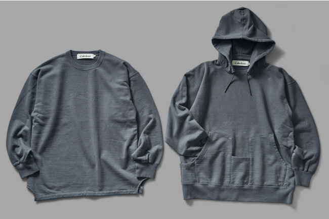 今回のスウェットは、カレドアーのデビューシーズンから展開されているアイテム。 その魅力は、オーガニックコットンを用いた肌触りがよく、柔らかでゆったりとした着心地です。 原綿に極力ストレスを与えないよう、丸胴編みで丁寧に編み上げられた生地を使うことで、高品質を実感するソフトな肌触りを生み出しています。 また、さり気ないブランドロゴの刺繍や、パーカーには数多くのポケットを装備しているなど、ディテールの細部にブランドらしいこだわりを感じさせてくれます。