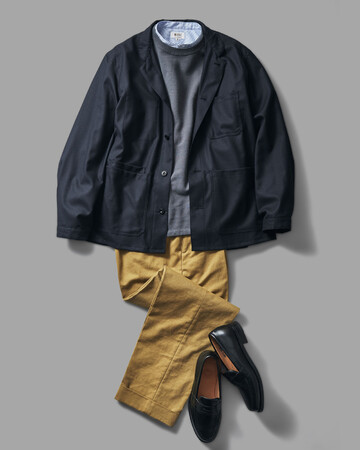 スタイルサンプル 01|グレースウェットを使ったラフなジャケパンスタイル