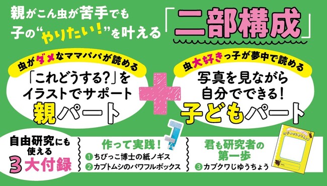 この“同じながらも相反する両者の思い”に、虫がこわくてしかたがない現役ママ編集者たちが向き合った結果、従来の昆虫飼育本にはなかった新しい1冊が誕生しました!