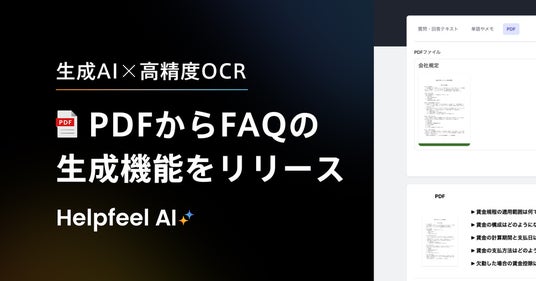 株式会社Helpfeel(京都府京都市、代表取締役/CEO:洛西 一周、以下「当社」)は、FAQ検索システム「Helpfeel(ヘルプフィール)」において、生成AIと高精度のOCR技術を活用した「PDFからFAQの生成機能」を7月3日より提供開始したことをお知らせいたします。
