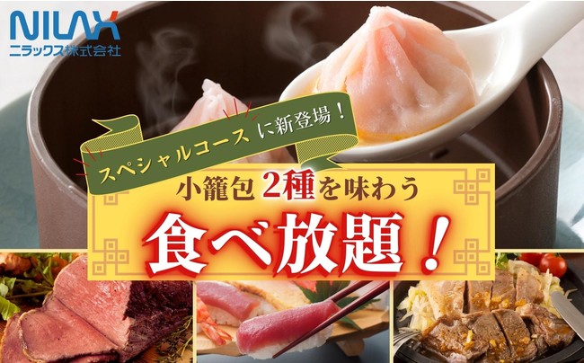 食べ放題のテーマパーク、 ニラックス株式会社(本社:東京都武蔵野市、 代表取締役:崎田 晴義)が運営する「エクスブルーららぽーと横浜店」にて、2022年5月12日(木)より、大人気のスペシャルコースに『蟹小籠包』が新登場いたします!