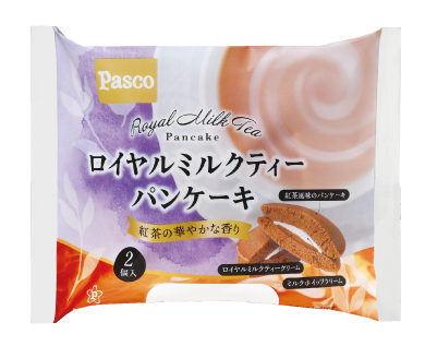 紅茶香るふわもちっとしたパンケーキです。ミルクのコクと紅茶の華やかな風味が楽しめるロイヤルミルクティークリームと、口当たりのよいミルクホイップクリームをはさみました。