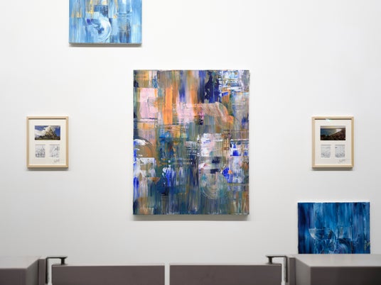 今回の個展では、その「完成形」だけでなく、そこに至るまでの「過程」をあえて見せる。行き詰まったキャンバス、進路変更を迫られた下地、ボツになった配色、小さな試し描き──ふだんならスタジオの隅で眠り、誰の目にも触れないはずの断片たちが、展示空間へと引き出されている。