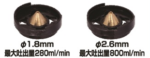 ・最大吐出量 :1.8mmノズル 280ml/min 、2.6mmノズル 800ml/min