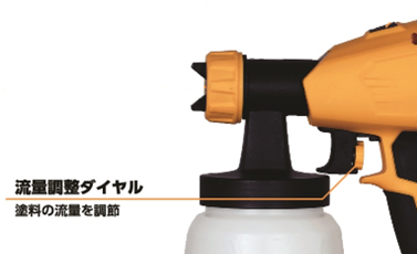 2種の先端ノズルと、流用調整ダイヤルで吐出量、吐出範囲の調整が可能です。