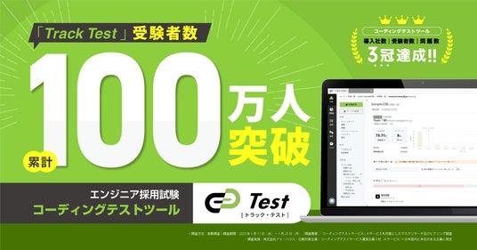 国内No1*のコーディングテストツール「Track Test(トラック・テスト)」を展開する株式会社ギブリー(本社:東京都渋谷区、代表取締役社長:井手高志、以下「当社」)は、2018年のサービスの正式リリースから約7年となる2025年6月16日時点で、累計受験者数が100万人を突破したことをお知らせいたします。