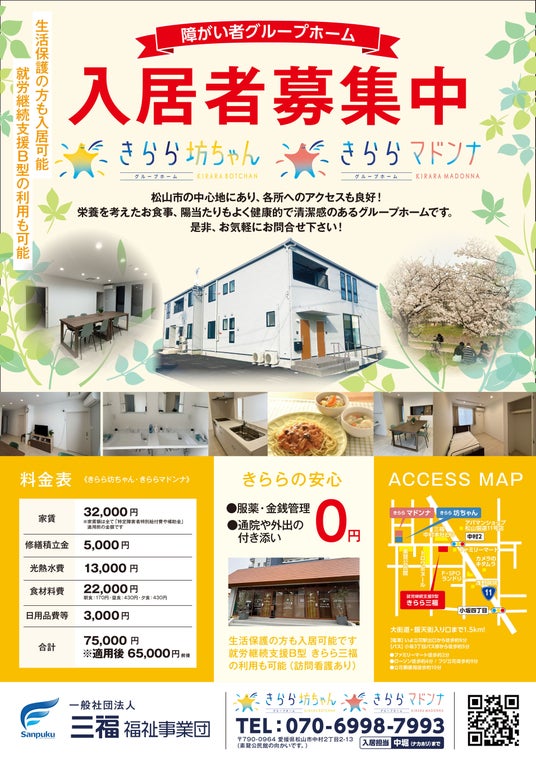 一般社団法人三福福祉事業団(所在地:愛媛県松山市)は、愛媛県松山市内において、マンションタイプ(ワンルーム型)の障がい者グループホームを2026年春に新たに開所予定であることをお知らせいたします。