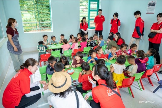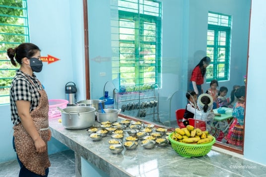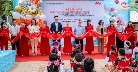 世界の子どもを支援する国際NGOワールド・ビジョン・ジャパン(事務局:東京都中野区、事務局長:木内真理子/WVJ)は、森永乳業株式会社(森永乳業)が2023年5月に開始したベトナムの子どもたちの健康を応援する「Smiles & Health for Children」に協力し、ベトナム国ディエンビエン省トアンザオ郡において、子どもたちの健康・栄養状態の改善に向けて、対象の幼稚園において、給食提供の施設や調理の基盤整備と、子どもたちの健康・栄養を管理する教員や保健スタッフの知識向上やスキル強化を進め、2023年5月~2024年4月第1期、2024年6月~2025年5月第2期事業を通して、同郡の6つの幼稚園の園児400名以上、教員・保健・調理スタッフ40名以上に支援を届けました。5月27日、第2期事業で整備した給食調理施設の引き渡し式が開催されました。