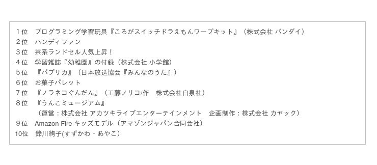 プロジェクト企画の第一弾として発表するのは、2019年にこどもたちやママ・パパたちが関心を持った「ヒト・コト・モノ」をランキング形式で紹介する「2019年流行チェック『こども ザ・ベストテン』」です。